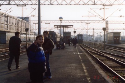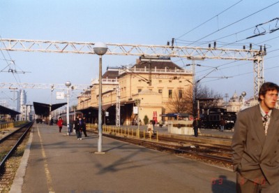 駅周辺の建物を見ると、 最近の戦争による弾丸の痕がまだ残っていた。 |