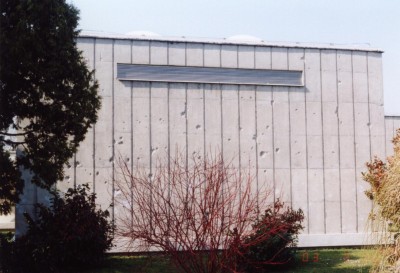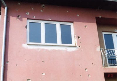 クロアチア戦争中、セルビアの攻撃を受けた。 記念館の壁にはまだ当時の痕が残っていた。 |