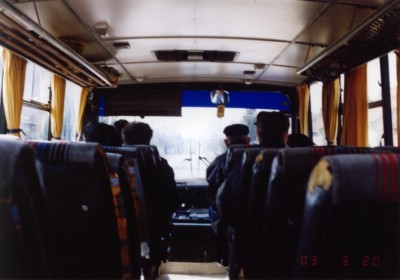 ローカルバスの中。 きっと日本人なんか見たこともないのに、 とても親切にしてくれた運転手さん。 |