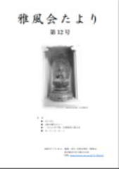 | 「雅風会たより」は、宗教芸術院支部「仏像彫刻 雅風会」の会報です。 雅風会の活動報告、会員の投稿やお知らせを中心に、年2回発行しています。 ※各号をクリックすると、内容をご覧いただけます。 |