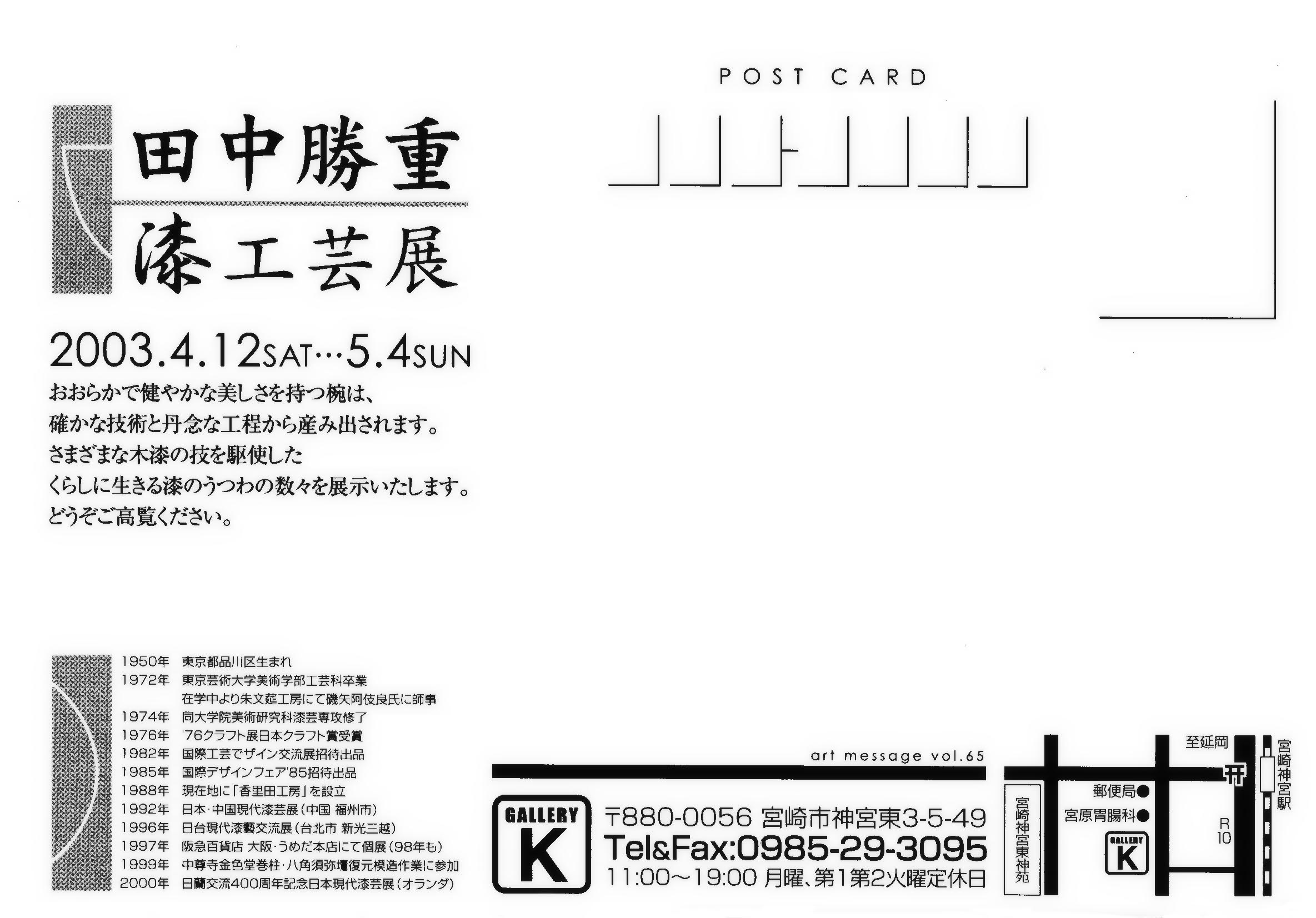 2003年4月12日(土)〜5月4日(日) ギャラリーK TEL 0985−29−3095 880−0056 宮崎市神宮東3−5−49