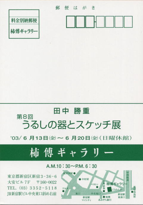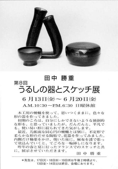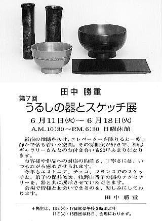 第8回 うるしの器とスケッチ展 2003年6月13日(金)〜6月20日(金)日曜休館 新宿柿傳ギャラリー 03−3352−5118