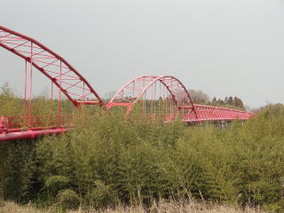 | 香良洲を過ぎた所で道路が途切れ、雲出川の北側に小さな橋台や築堤が残っている。雲出川橋梁は、橋脚が水道橋に転用されているが、木が邪魔して橋脚は少ししか見えなかった。この先しばらく廃線跡がわからなくなるが、三渡川の南の米ノ庄あたりから再び道路になっている。 | |