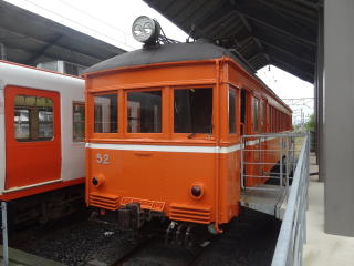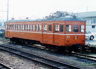| 電化前後に導入されたのは、デハ1形、デハニ50形、クハ14形の計10両。一部は改造でデハ20形等に変わったが、全車1980年代まで50年以上現役だった。デハニ52・53の2両は、2009年にさよなら運転を行ったものの、まだ車籍を残している。また、デハ1形で最後まで残った2両は、さとがた保育園で保存されている。1930年以降は大阪電気軌道や国鉄の車両を譲り受けたが、早期に消滅している。 | |||||||||||||||||||||||||||||||||||||||||||||||||||||||||||||||||||||||||||||||||||||||||||||||||||||||||||||||||||||||||||||||||||||||||||||||||||||||||||||||||||||||||||||||||||||||||||||||||||||||||||||||||||||||||||||||||||||||||||||||||||||||||||||||||||||||||||||||||||||||||||||||||