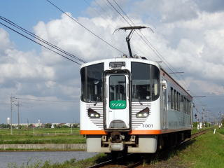 | 東急1000系を譲り受けたもので、一畑電鉄初のVVVFインバータ制御車。中間車からの改造のため、東急1000系とは前面デザインが異なる。2015年2月に営業運転を開始している。 |