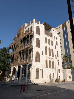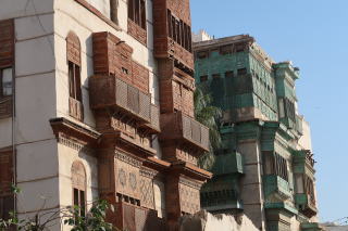 | 旧市街の建物は、緑や茶色の出窓が特徴的。再整備が進んでいて、美しい姿を取り戻している建物と崩れ落ちそうな建物が入り交じっている。ショルバトリー・ハウスは、アラビアのロレンスの時代にイギリス公使館だった建物。またナシーフ・ハウスは、19世紀後半にジェッダ知事が建てたものである。 | |