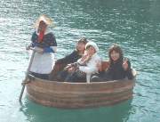 これは、漁のたらい舟とは違って大きいです。観光用なのね〜。