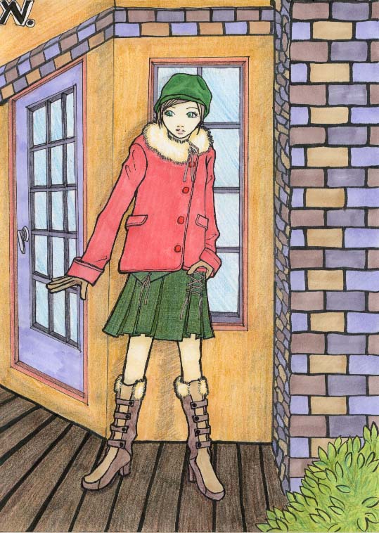 タイトル:冬の街角 コメント:ハイ。背景失敗です。ハイ。 スイマセン。色考えたほうが いいすね。スカートのデザインは、 何回変えたかどうか・・・。 non-noを見ながらコーディネート しようと思ったのに、結局全て 自分のデザイン。 服をデザインするのって楽しいよねー。 センスないけど。