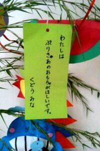 七夕飾りを持って帰ってきた!短冊には「大きくなったらお花屋さんになりたいです」と